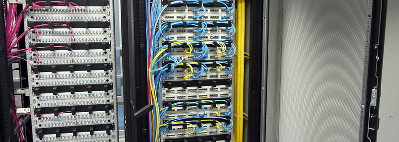 Aufgabenstellung war es, ein Rechenzentrum mit Serverschränken auszustatten, sowie eine passive Datenverkabelung zwischen den Serverschränken und dem Twisted-Pair-Raum zu erstellen.