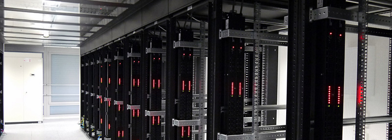 Im Serverraum wurden je 4 Server-Schrankreihen mit jeweils 11 Racks aufgestellt.